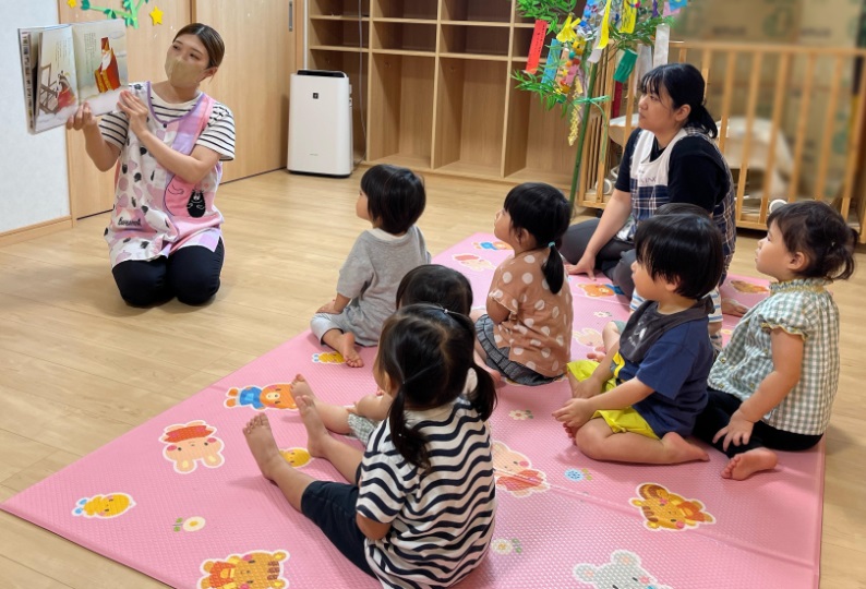 七夕の由来や「おりひめ」と「ひこぼし」のお話の絵本を読んだり、