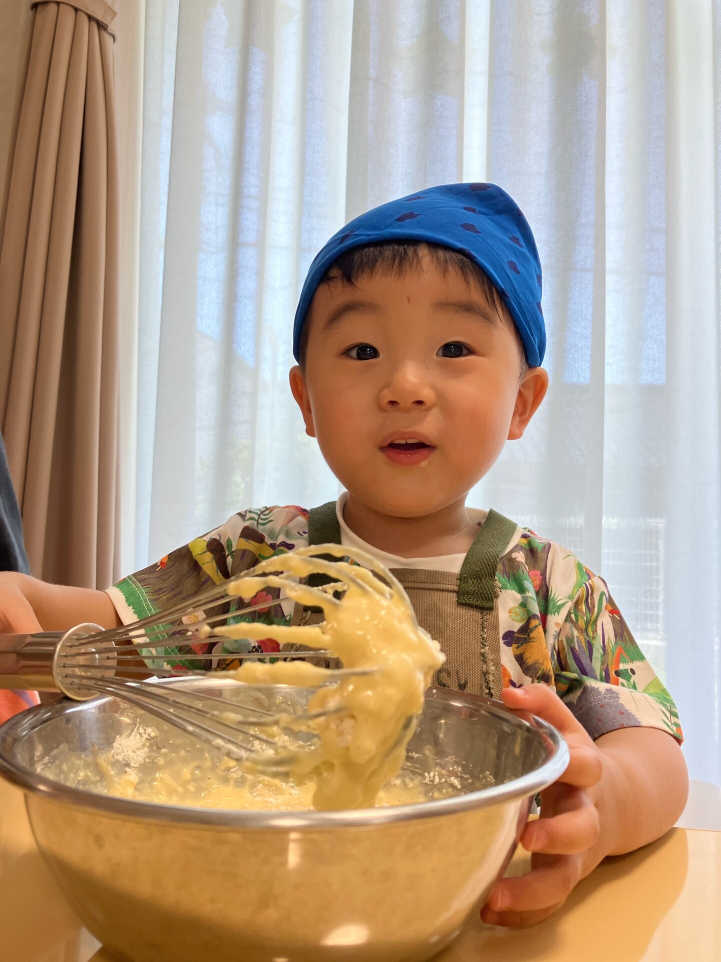 みんなで楽しく、生地をぐるぐる混ぜて、焼き上げました。